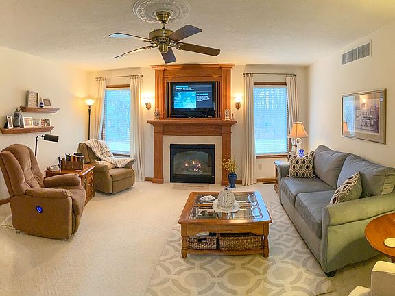 Perfect space for 1 or 2 to be pampered! This lovely, custom-built home is spacious and ready for you! Many doorways are arched, enhancing the open feel. Large kitchen/dining area boasts a lovely island accented with stunning tray ceiling & ceiling fan above, roll-out pantry, and french doors w/in-blind windows leading to pergola-covered deck. Whole house sound system can be zoned as you desire. Living room includes a ceiling fan, tasteful custom-built mantel around the gas fireplace which includes built-in for TV that can be closed off when not in use. Generous master suite includes a large walk-in closet, walk-in shower, and washer and dryer for convenience. The property is currently taxed as a 1 bedroom home, however, the 2nd bedroom (currently a den) has it's own closet, and if built-in shelving is removed it could be a 2nd bedroom/guestroom. The foyer/sitting room with attached half bath can be closed off from the living room with pocket doors and has been used as a second bedroom using a pull-out sofa. The attached, oversized, heated and insulated 2-car garage includes a large workshop, utility tub, and floor drain. Lovely landscaping, sprinkler system and gutter covers grace the exterior. All this and more on nearly 1/2 acre, located in a great subdivision between Milford and Syracuse. Schedule a showing today before this one gets away!