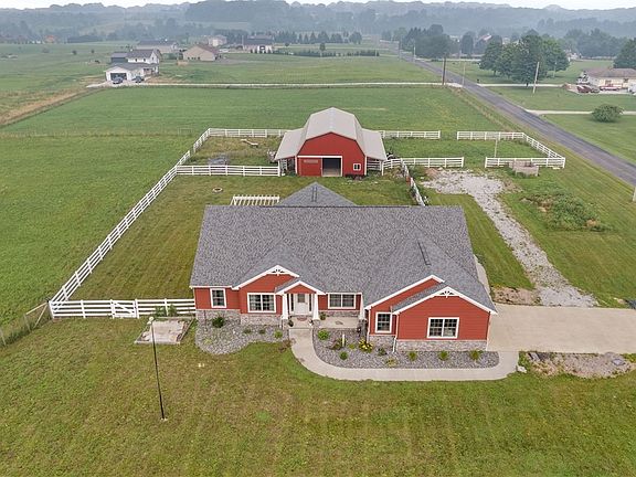 Check out this beautiful ranch on over 5 acres complete with a 6 stall barn! The home features over 2700 square feet with open concept floor plan. As you enter through the front door you'll be greeted with vaulted ceiling in the great room, large eat in kitchen featuring a extended center island and underneath cabinet lighting, formal dining room with pillars, private office with closet, large master suite with walk in closet and barn doors. Open 13 course basement with steel beams is a blank canvas and ready to be finished with a pre plumbed bathroom and kitchen. Over look the grounds from hot tub on your large tiered trex decking with lighting and gas line for grill. Enjoy fresh fruit from the raspberries and blackberry bushes that are boasting with berries. This property also provides 48X36 barn which includes 6 stalls (11 x 12), separate electrical panel, Ocean Breeze evaporative mist calling system, hot and cold water, half bathroom, full loft for capacity of 300 bales of hay and