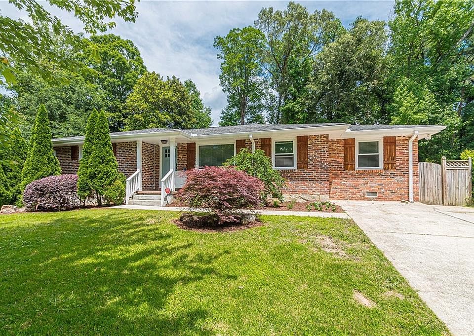 When you make this graceful mid-century 3-bed, 2-bath brick house your home, you’ll be faced with choices: Dinner in the dining room, with its view of the landscaped front, or the sunroom, with its backyard vistas? Stage your party in the living room, with cocktails and a picture-window, or poolside on the back deck? Grab a quick breakfast at the kitchen bar in the den or in one of the myriad outdoor spaces? Head out to entertainment in nearby Decatur or downtown Atlanta? The utility of the space here comes from renovations that created an uber-useful open plan. Bold columns set off the dining room from living room and the living room from den. The kitchen has direct access to the dining and living spaces, den and back deck, making entertaining a breeze anywhere in the house. Floors throughout are hardwood, walls freshly painted in neutral white, and lights are updated. The kitchen is both efficient and luxurious, with loads of cabinets topped with stone counters, subway tile backsplashes, and stainless steel appliances (including a 6-burner range). The owner’s suite has a private bath, and the other bedrooms feature peekaboo windows for natural light and privacy. Plan on spending lots of evenings and weekends in the back yard, where the sprawling deck overlooks an inviting oval pool. There’s also a charming, detached storage shed. Easy walks to Druid Hills Middle School, Shamrock Forest, Clyde Shepherd Nature Preserve, and easy drives to downtown Decatur, Emory and I-285.