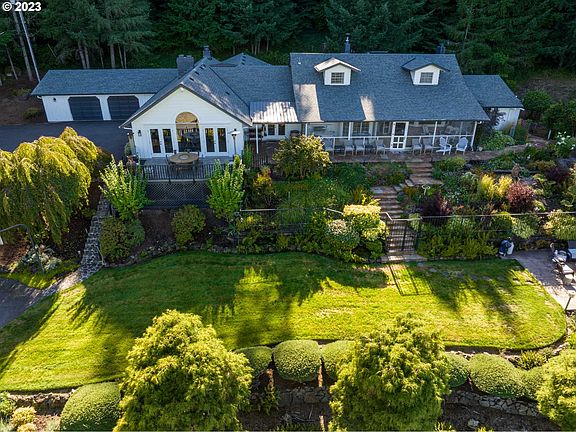 Magnificent, private country estate within 1 mile of the city limits. Mostly one level with amazing views. Main level primary suite with vaulted ceiling, fire place and walk in closets. Kitchen features stainless steel appliances, double ovens, built in range and dishwasher. Second guest bedroom suite on main level. Two separate entertaining areas. Three additional fire places. Third family area with bar and 400 bottle refrigerated wine room. Formal dining. New roof and exterior paint. Gated entry. Heated in-ground pool. Pool house with bath and dressing room. Great, screened in deck with city views, covered barbeque area, fire pit and covered hot tub. Spring fed pond. Walking trails through park like, treed property. 18 acres of 20 year old groomed timber. Seller states that current timber value at $100,000 and growing at 8% will be worth $200,000 within 8 years. Buyer to do own due diligence. Gardens with gazebo. Barn with finished second garage. Shop/storage. Much more. Possible owner carry on 20 acre parcel.