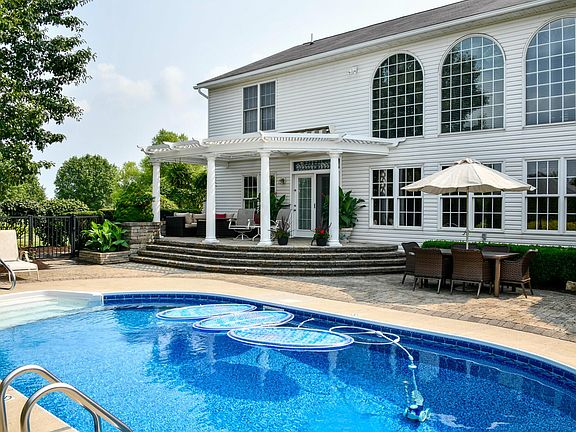 If you are looking for your DREAM HOME, then this is it! Stunning one owner custom built home with over 4,000Sf. of living space, a resort style pool/patio and 30x60 pole barn all on 5.3 acres of land. Two story wall of windows overlooks the heated inground pool, gazebo and paver patio. Kitchen boasts granite counter tops, SS appliances and double pantry. 1st floor owner's suite and laundry room. Awesome finished 1,200Sf. lower level is just like having another house, featuring full kitchen and hi-eff. w/b stove in family/rec room, 5th bedroom, bonus room, an amazing full bath and tons of storage! Perfect mother-in law suite. Step outside to relax in the pool overlooking the extensively landscaped yard. The Morton building has an upper loft, two 10ft bay doors and 6' covered front porch.