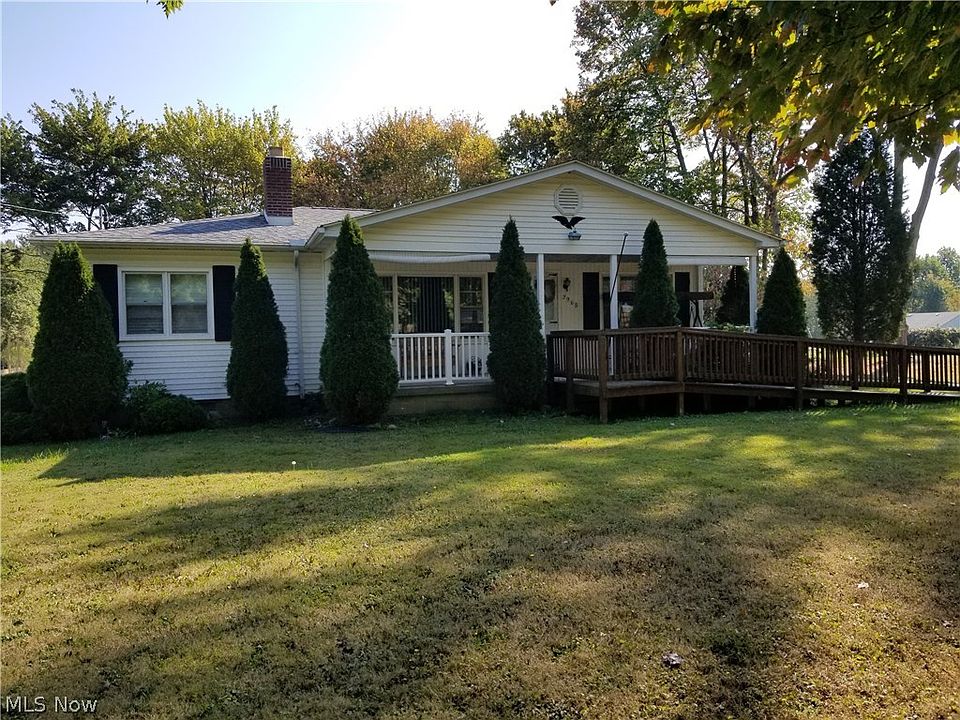 Cozy up next to the stone fireplace after a stroll on over an acre of land in this 3 bedroom 2 bath ranch home in Howland. Relax on the beautiful front porch or the enclosed sunny breezeway after picking some blueberries and concord grapes from the backyard. The home features lots of natural light, hardwood floors, cove ceilings, plastered walls and pocket doors on all bedroom closets. Enjoy time in the finished basement where there is a lovely family room with convenient access to the backyard. The home also offers a wheelchair ramp. (Owners have new flooring for the kitchen and are also including the newer sitting lawn mower!)