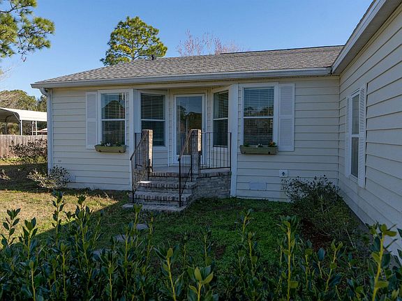 Very spacious home, property and garage! Take a look at this expansive manufactured home with over 2000 sqft, a nice open plan and great touches like vaulted and trey ceilings. New paint throughout the interior and new carpet just installed. Newer stainless appliances in the bright kitchen with white cabinets and center island. Attached two car frame garage gives you lots of space for cars, toys or storage. All of this on one acre of land, partially fenced and a pond at the rear. Lots of room to roam here! New roof and separate workshop with electric are a plus! Very quiet area but close to everything including shopping and a short drive into Historic Downtown St. Augustine or to the beach! You will want to call this home!