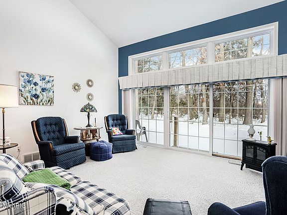 Bright, lofty, and primely positioned 2 BD, 2 full BA condo in the City of North Muskegon! Open concept with soaring ceilings in the living/dining area, transom windows, full-width privacy deck, enhanced electrical, and much more. Main floor master suite features private deck access, wooded views, dual WICs, double vanity, large low threshold shower, and convenient laundry center! The U-shaped kitchen maximizes cabinetry and counters, comes fully applianced, and includes desirable double-door pantry. 2-stall garage includes extra electrical, floor drain, and insulated overhead door. Solidly constructed, this end-unit home offers complete main level living with a versatile full footprint basement, complete with 200 amp service and plumbing for future bath! See plans and 3D tour for more!