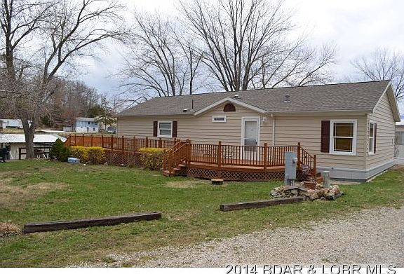 Flat, Flat Lot w/Deep Water! This is undoubtedly the nicest manufactured home I've seen! Six-Inch Walls so very efficient for heating & cooling. 3 BR, 2 BA, Large Ceramic Tile in Kitchen, Dining & Baths, Loads of Cabinets in Kitchen, Open Living, Dining, Kitchen. Rooms are Spacious & Owners have upgraded everything! Nice Decks w/View of Huge Cove at Gravois 4MM(Mill Creek) Lakefront Deck that walks right out to 2-well Boat Dock w/Attached Swim Platform w/Slide & Diving Board. 4000# & 12000# Hoists included. Dock Slip could be expanded to 36'. Home is connected to Gravois Sewer District. Large Grassy Lot. Well Assessment is not collected each year, only as needed. Per owner, the deck is completely new and finished this last year. B#10256
