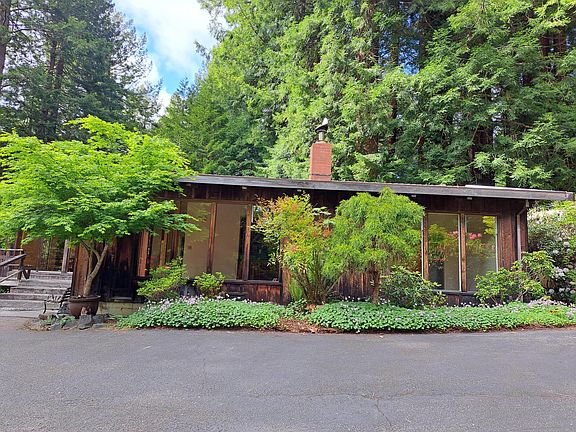 This 4 bdrm, 2 ba, 1581 sq ft home sits in a gorgeous park-like setting on over 2 acres in the midst of towering redwoods, scores of rhododendrons & a plethora of ornamental plants. Many of the rooms are designed w/numerous & large windows to take advantage of the view of this fabulous, garden setting. Take a stroll along the trails in front of the house to enjoy a closer view of the many & various plants & flowers. There is a fireplace in the large living room w/an insert & a large dining room w/hardwood floors & access to the wrap-around deck for outdoor entertainment & enjoyment. Some TLC will be needed to bring this beauty back to her glory days but you won't find many settings as striking as this one. Easy to show. Call for an appointment.