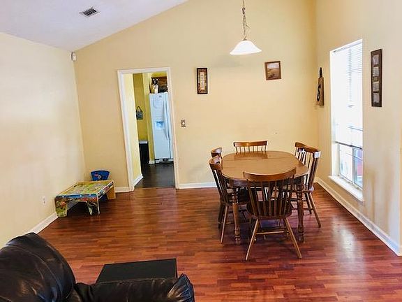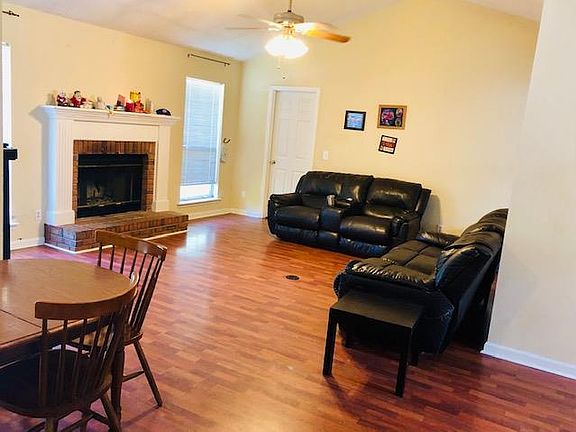 This home features three bedrooms and two baths. Open floor plan with dining area, great room and wood burning fireplace. Vaulted ceilings, hardwood flooring with carpet in bedrooms. Spacious kitchen with bay window and breakfast nook. Enclosed laundry room off of kitchen. Garage has extra space for storage. Wood fence in backyard.