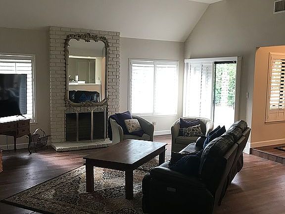 Beautiful Stonebridge gated community with a serene view, single story Tudor style home. This home boasts high ceilings, crown molding, a large living room, kitchen, nook, dining room or office, and spacious bedrooms. The Kitchen has newer stainless steal appliances, pantry, and eating bar. The home offers a newly remodeled bathroom, new flooring and paint throughout, NEW AC, new garage door, and shutters throughout the home. You will enjoy the the privacy of a secluded fenced back yard. There is an abundance of storage including built in storage in the garage. Many HOA amenities with 3 pools/spas, clubhouse, tennis courts, gated 24hr guard, walking or riding your bike. Conveniently located Northwest close to shopping, Fig Garden, River Park, and freeways. This home won't last!