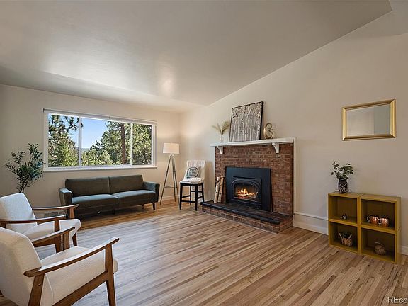 Rare opportunity in Evergreen’s sought-after Greenwood neighborhood! This beautifully updated 4-bed, 2-bath home sits on a private, tree-lined lot with mountain views. One of Evergreen’s few flat and highly walkable neighborhoods, Greenwood offers easy access to Wilmot Elementary, Evergreen High School, Wulf Rec Center, Evergreen Lake, and Three Sisters trails—perfect for walking, biking with kids, or even roller skating. Homes here rarely come available due to the unbeatable location and lifestyle. The home features a fully updated kitchen with stone countertops and modern finishes, hardwood floors, two spacious living areas, and expansive windows that bring the outdoors in. Enjoy thoughtful outdoor spaces including a fully fenced front yard and separate backyard—great for pets, a garden, or even chickens. The lower level offers a cozy flex space perfect for a playroom, TV room, or office, plus bonus storage or workshop. Year-round elk visitors add to the charm of this Evergreen gem!