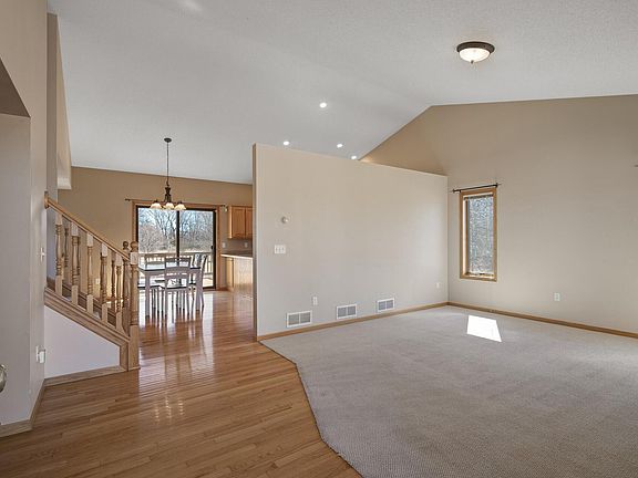 Welcome to acreage, privacy & a fantastic home in Princeton! Surrounded by beautiful mature trees and located on a quiet cul-de-sac, this property provides a country living feel while still being conveniently close to town amenities. Inside, the open concept floor plan is highlighted by vaulted ceilings and tons of natural light. Hardwood floors flow through the foyer, kitchen, and dining area, creating a warm, classic feel. The large kitchen features a convenient breakfast bar, corner pantry and an abundance of raised panel oak cabinets for all your storage needs. This 2-story home also features main level living with a conveniently located bedroom and laundry room on the first floor. You’ll also enjoy having both a living room and family room on the main level. Upstairs, you’ll find three bedrooms, including a primary suite complete with a walk-in closet and a private ensuite bath. With five total bedrooms and two full & one 3/4 bathrooms, this home offers flexibility for growing families or those needing extra space for guests and home offices. The partially finished basement includes a completed bedroom and offers potential for additional finished square footage to suit your needs. The well-maintained exterior features a charming front porch, back deck, and an irrigated yard—ideal for gardening enthusiasts and outdoor enjoyment. A 10x14 storage shed and an additional garden shed provide ample space for tools, equipment, and hobbies. Recent updates include a newer roof, AC, and well pump, The 3-car garage is perfect for vehicles, storage, or a workshop. This property truly has it all—privacy, space, modern updates, and a great location. Don't miss your chance to call this beautiful home yours!