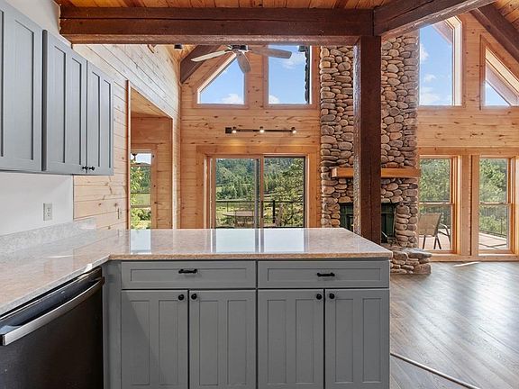 Welcome to Aspen Meadows Ranch, where mountain living seamlessly blends with modern luxury. This fully remodeled retreat, set on 60 acres of untouched wilderness, offers unparalleled privacy and direct access to thousands of acres of national forest on three sides. The landscape features a captivating mix of lush meadows, enchanting aspen groves, and towering pine trees, creating a serene and secluded haven. The home itself is a masterpiece of comfort and style, boasting 3 bedrooms, 2.5 bathrooms, and three inviting decks. A spacious loft serves as the perfect office or quiet reading nook, while the cozy family room in the finished walkout basement provides an ideal space for relaxation and entertainment. At the heart of the home is the awe-inspiring living room, highlighted by a tall vaulted tongue-and-groove ceiling and a floor-to-ceiling wood-burning fireplace that radiates warmth and charm. Large windows throughout the home flood the space with natural light, enhancing its welcoming atmosphere. The kitchen is a chef’s dream, featuring quartz countertops, ample storage, and a thoughtfully designed layout that inspires culinary creativity. The primary suite, located on the upper level, is a true sanctuary. It features a private balcony, a generous walk-in closet, and a luxurious en-suite bathroom complete with a walk-in shower, soaking tub, and double sinks. The two additional bedrooms on the main level are equally inviting, with one offering its own balcony—perfect for savoring morning coffee amid tranquil surroundings. Step outside onto the expansive 384-square-foot deck from the living room and take in the breathtaking views of the surrounding landscape and wildlife. The home is adorned with all-new pine doors, new windows, and laminate flooring, adding a rustic yet refined touch to its interiors. Equestrian enthusiasts will appreciate the 35'x50' barn, equipped with four stalls, three garage doors—including a 10-foot-tall door with a drive-through option—and ample space for equipment and supplies. Aspen Meadows Ranch offers the perfect blend of modern amenities and natural beauty, making it an ideal retreat for those seeking tranquility, adventure, and a deep connection to nature.