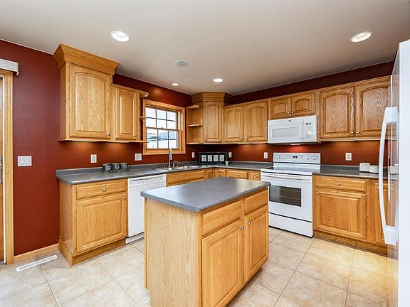 Spacious ranch in a great Hiawatha location near businesses, restaurants, shopping, and easy highway access! You will be welcomed by the spacious great room with vaulted ceilings and gas fireplace with tile surround. The large kitchen features oak cabinets, tile flooring, and daily dining area with sliders to the huge deck! Off the kitchen is the large laundry room with plenty of storage space and folding counter with sink. The primary bedroom also offers ample space with en-suite bath with double vanity, large jetted tub, and separate shower, plus a large walk-in closet. 2 additional nice-sized bedrooms and second full bath complete the main level. The lower level is ready for entertaining with a spacious rec room complete with daylight windows, wet bar, and new carpet. A 4th bedroom, 3rd full bathroom, bonus room perfect for a workout room, and plenty of storage space complete the lower level. Other features include solid oak 6 panel doors, 2 car attached garage, sound system with in-ceiling speakers, radon mitigation system, and new sump pump.