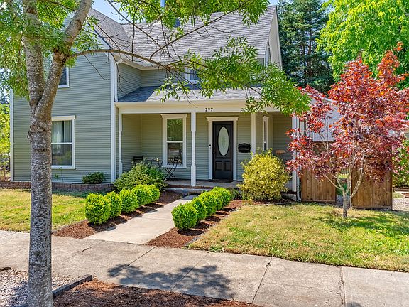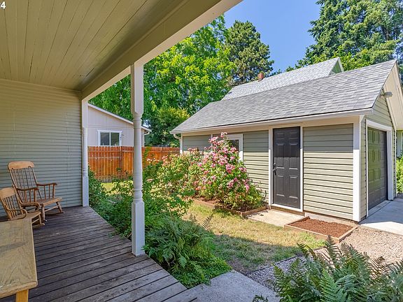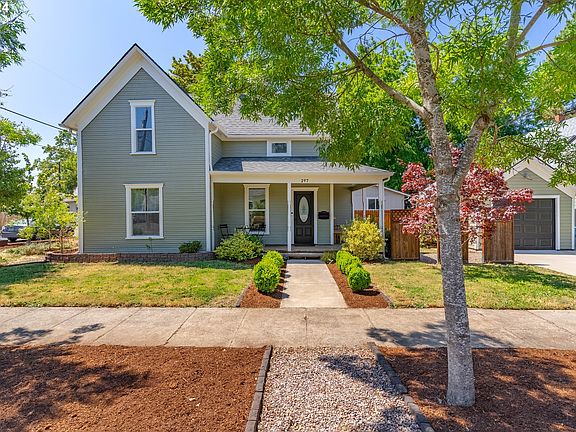 This delightful 3 bed, 1 bath home spans nearly 1,400 sqft, with character inside and out. Inside you'll to find updated paint, a cozy certified wood stove, a charming clawfoot tub/shower, newer flooring, and a spacious kitchen with tile backsplash. Major improvements include 7-year-old roof, 6-year-old vinyl windows, new exterior paint, updated electrical, and more! Outside features a detached garage and a covered deck, all nestled on a generous corner lot. A classic home with modern convenience!