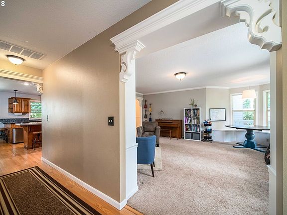 Stunning custom built Victorian, sought after quiet OR City neighborhood nestled high on a bluff for views of the West Linn hills & added privacy. Open floorplan loaded with custom built-ins & Crown molding throughout.Remodeled kitchen, new a/c & furnace 2017. Master w/French doors, vaulted ceilings, fireplace & balcony, 5 minutes to I-205. Has a common or separate entrance to the office/guest room/mother-in law area above the garage