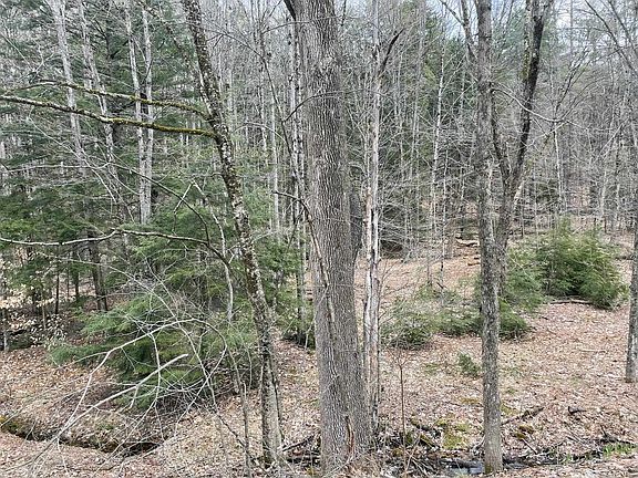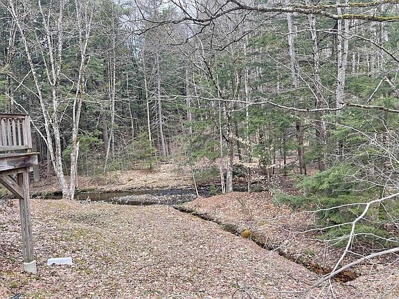 This very sweet cabin has been in the same family for decades as a summer retreat and they are now reluctantly letting it go. The first floor consists of a rustic living room with a soapstone woodstove, a well equipped kitchen, the bathroom and mudroom. There is a spacious deck for sitting and enjoying the sound of the brook and the peace of the woodlands of the 191+/- acres! Across the street a garage /workshop has been added for all your toys and tools. All of this and the added benefit of fiber optic internet, a rarity in such a country setting.