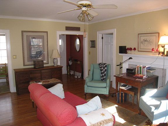 Classic City Corner Property in the Heart of Five Points- the best Shopping, Restaurants & Bread that Athens has to offer within a short walk. A spacious white country kitchen with prep island, wine rack, glass front cabinets & bar area. The hardwood floors throughout the living, dining & bedrooms has been beautifully cared for. Directly off of the kitchen is a cozy dining area that opens to the living room; which has a large marble, wood burning fireplace, built in shelving & access to the front foyer & back deck. Two spacious bedrooms with large windows share an expansive walk-in closet that is spacious enough to be an office or studio. The Bathroom has updated tile floor, tile shower surround w jetted tub & pedestal sink.