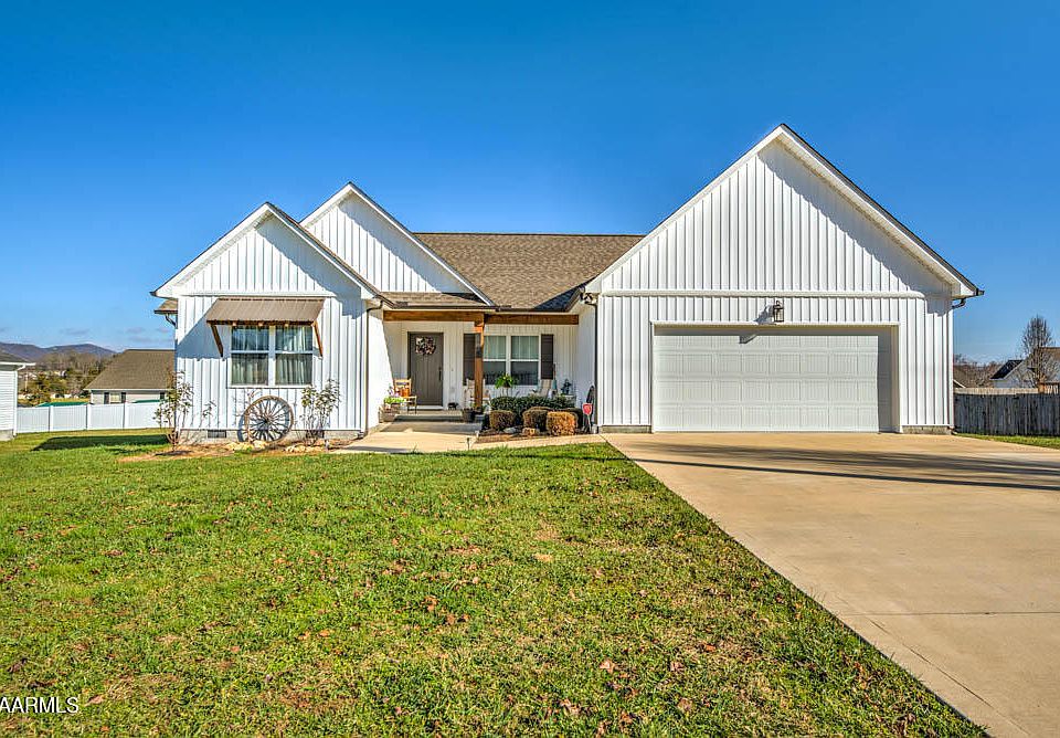 This beautiful farmhouse style 3 Bed/2 Bath custom rancher sitting on a level lot is a MUST SEE!! Located in a family friendly neighborhood this beauty features an open floor plan, split bedrooms and can lighting throughout. The gorgeous kitchen is light and bright and features SS appliances, granite counters, a custom island and tons of counter space! The owner's suite includes a large walk-in closet and a large bathroom with oversized walk-in shower, water closet and his & her vanities. The cozy living area is open to the kitchen and has a vaulted ceiling, shiplap accent wall and a gorgeous stone gas fireplace with a wood mantle. This home is absolutely beautiful, move in ready and is sure to sell quickly! Mountain Views!