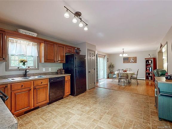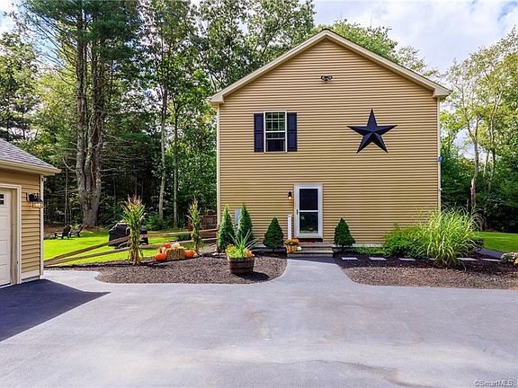 Beautiful 6+ acre property provides the perfect setting for this lovely colonial style home. This home was built in 2011, and is in immaculate, move-in condition. Bright, open floor plan features kitchen with all appliances included, large dining area with sliders to deck, spacious living room, and a half bath. The second floor has a master bedroom, 2 other bedrooms, and a large full bath with is accessed from the hallway and the master bedroom. Features include hardwood flooring, two mini splits which provide air conditioning and supplemental heat, and great usuable basement space with separate exterior entrance door. The exterior features include a two car detached garage, paved driveway with turnaround area, back deck overlooking beautiful level yard with plenty of room for outdoor enjoyment. Beautiful country setting, yet easy access to Rt 6 for commuting. Close to RI line. This home has been beautifully maintained, with pride of ownership showing throughout. Be in your new home for the holidays!