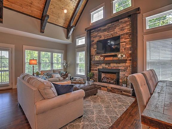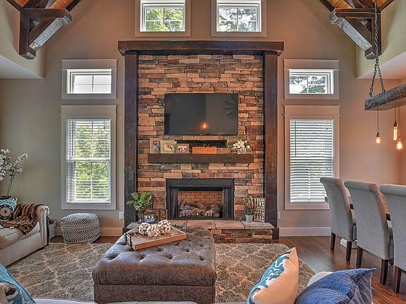 REALTORS WELCOME. WATERFRONT. One-of-a-kind home on Boone Lake. Appx 250 feet of waterfront, property has both main channel and cove access. Beautifully decorated 4 Bedrooms/3.5 Bath with Movie Room, 2 Kitchen areas & 2 Balconies. Screened upper balcony with lake and wildlife views. 3 spacious bedrooms, with walk-in-closets and en suite bathrooms and 1 bunk room. House is like-new, barely lived in. Move-in ready! Realtors welcome. Furniture optional. Buyer to verify all information. Square footage based on property record.