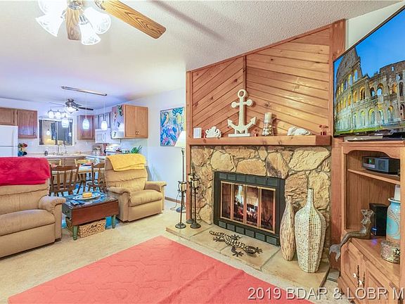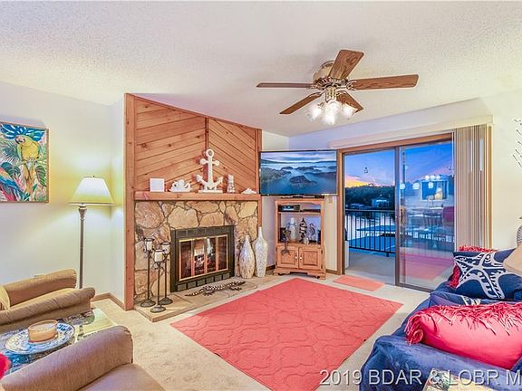 This affordable condominium sits right on the water on the 1MM & a short walk from the Bagnell Dam Strip. Magical Dragon Car Shows, Holiday Parades, Shootout Boat Races, & Pub crawls this complex is located right in the mix. Still offering the quiet Lake of the Ozarks feels. Only 15 units w low condo fees & no nightly rentals allowed. It's got family resort vibe w a community dock that features a large swim platform, large steps into water, & 10X24 boat slip that you can see from your deck. Only 8 short steps to the front door! Lake views capture your attention right away along w the natural ozark stone wood burning fireplace. Open kitchen & living room area makes it great for enjoying company. Master suite bedroom looks right on top of the lake w nothing to obscure your views but the sunsets and sailboats passing by from the Regatta Races leaving from OYC. Complete package deal w all the furniture & decor. New plumbing, new stove, new microwave, updated bathroom, & well maintained!