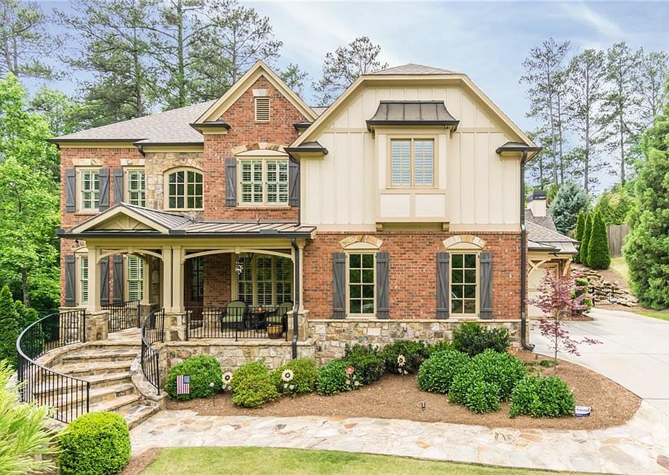 Exquisite brick and stone home features a large rocking chair front porch. The 2 story foyer welcomes you to this beautiful home. Plenty of options for home offices and virtual learning. Beautiful coffered, vaulted, & beamed ceilings. Kitchen features stainless appliances, granite, plenty of cabinets, large kitchen island, & new lighting fixtures. Curl up next to the cozy stone fireplace in the Keeping Room. Enjoy the backyard oasis with a walk-out level yard & grand outdoor fireplace, patio, & plenty of room to add a pool. Finished basement.plus plenty of storage. Award Winning Schools!