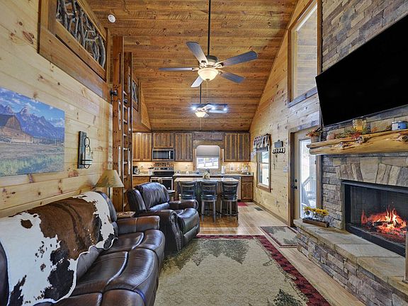 Welcome to your own slice of paradise in the stunning mountains of Blue Ridge! This charming board and batten cabin with live edge accents is truly a hidden gem, nestled along the tranquil creekside. This home features an all wood exterior as well as interior. With 2 spacious bedrooms and 2 pristine bathrooms, this haven is perfect for creating unforgettable memories with loved ones. The open and inviting floor plan seamlessly blends rustic charm with modern convenience. The cozy living area offers a warm and inviting ambiance with its beautiful rock fireplace. But wait, there's more! Step outside onto the expansive screened porches (yes, 2 screened porches) and take a moment to soak in the pasture and creek views. For more outdoor enjoyment there is a fire pit complete with chairs and lights. This cozy retreat is just minutes away from Blue Ridge. For the water enthusiasts, both Lake Blue Ridge and Lake Nottely are just minutes away.