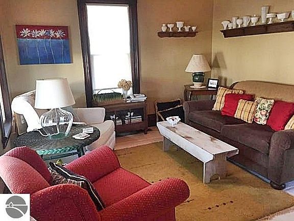 Adorable 1 Bedroom Bungalow situated on the Desirable Northside of Manistee, steps to Lake Michigan and Man Made Lake. This is a true historical gem with original exterior integrity. Owner had the Kitchen, Bath and Bedroom renovated in 2012 by an Interior Designer. Some features of the Home are built in Eating area in Kitchen, Pine and hardwood floors, Dining Room with original plate rack around room, large walk-in closet, Great Front Porch with tongue groove ceiling and fan. Basement is accessible from outside entry and has 1/2 bath with shower, W&D. Basement could be used as guest area. New windows-2013,Roof-2015, Furnace-2008, Hot water heater-2009.Nice deep yard and awesome neighbors. Think of it as a condo with no dues! Perfect home for a Beach House or Single/Couple Starter Home.