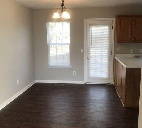 3 bedroom, 2 1/2 bath, laundry room, fireplace, patio. Master bedroom downstairs with large bath and walk in closets. Two bedrooms upstairs with bath. Large floored storage area over garage. Fenced backyard. City trash pickup