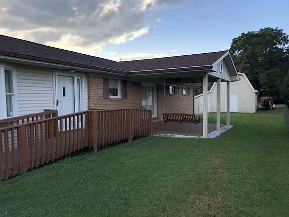 Extremely nice brick ranch home. Well maintained interior and exterior. Inside has large Family Room with stone fireplace/gas logs. Kitchen with oak cabinets and appliances, breakfast or dining area with french door to back porch, laundry room with storage and freezer, Spacious Living Room, 3 Bedrooms and 2 Baths. Neutral colors throughout, hardwood or laminate flooring. Covered front and back porches. 1 car carport, handicapped accessible. Large 2 story storage building with 2 entrances and electric 16x20 and 6x20.