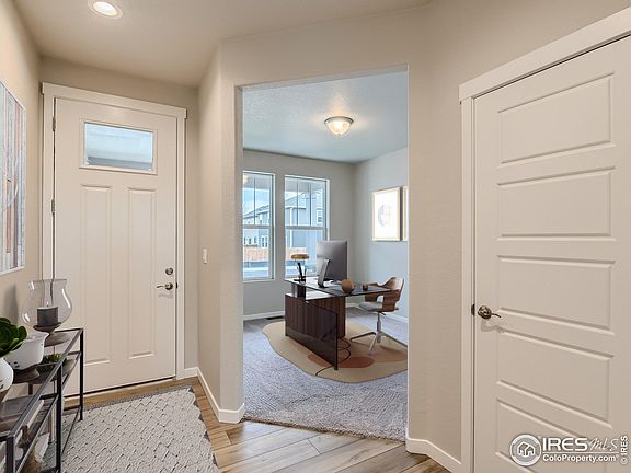 Stunning 2-story home with 3 bedrooms, 2.5 baths, study and loft. The foyer invites you into your future home with a spacious front study that leads to a powder room, living, dining and kitchen with quartz countertops. The owner's entrance off your 2-car garage offers a drop-zone which is great for storing shoes, backpacks and jackets. The second floor features a loft, owner's suite with a walk-in closet, two additional bedrooms with walk-in closets and secondary bath. The unfinished 9' basement is pre-plumbed for future growth of a full bath, wet bar plus room for another bedroom and rec room. Home is projected for completion by November '23. Model Address is 18 Chipeta Way Lochbuie CO 80603. Prices, plans, and terms are effective on the date of publication and subject to change without notice. Depictions of homes or other features are artist conceptions. Hardscape, landscape, and other items shown may be decorator suggestions that are not included in the purchase price and availability may vary.