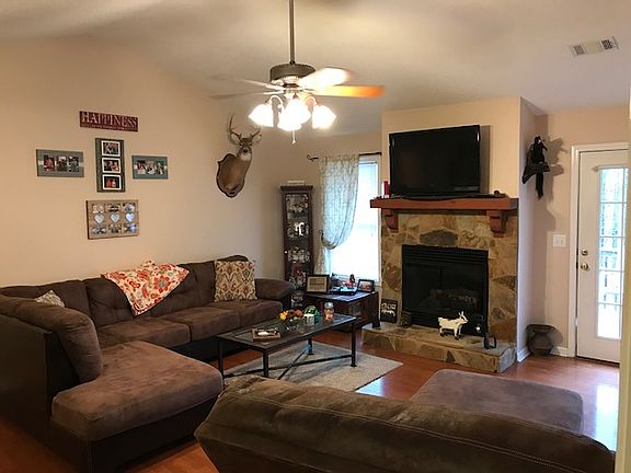 3 bedroom/2 bath home on 2.04 acres. Open floor-plan with stone fireplace that has gas logs. Living room has vaulted ceiling. Carpet in all bedrooms, beautiful hardwood floors throughout. Title in bathrooms. Master bedroom has tray ceiling along with a large walk in closet. Master bath has walk in shower and a garden tub. The other bedrooms have two closets each. All rooms have ceiling fans. Large pantry with access to the attic. Tons of space in the attic for storage. Laundry room is average size with shelves. Kitchen has gas stove. Microwave is above the stove. Seating for 8 at the bar. Open dinning room. Two car garage with large closet for storage. Fenced in back yard. Access to crawl space in back yard. Lighting under the house, along with black plastic throughout. Hot water heater under the home. Front porch is concrete and covered. Well and Septic on property. New AC unit in last 5 years, back deck replaced last summer. All rooms have been repainted in last two years. Very quite neighborhood off the Fall-line Freeway. 9 miles to downtown Milledgeville and 15 miles to Macon. Please contact for more pictures or questions.