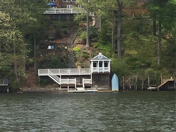 Waterfront Bungalow, renovated and updated for easy year round living. Vaulted ceilings with wall to wall windows to enjoy the water views from the living room with long plank wood look tile flooring. Large master bedroom with water views vaulted ceilings. Remodeled full bath with shiplap walls vaulted ceiling glass shower enclosure and black walnut vanity. Walk out from the kitchen to the oversized composite deck to enjoy your very own unobstructed lake views. Terraced stonework and professional landscape with fire pit patio additional decking and a club house with bar top, electricity and cable hookup to enjoy the lake life. Large dock with catwalk to accommodate your boat. Low voltage lighting throughout landscape. Central air, new roof, fresh paint among many other updates. Come enjoy waterfront living from this charming home.