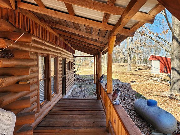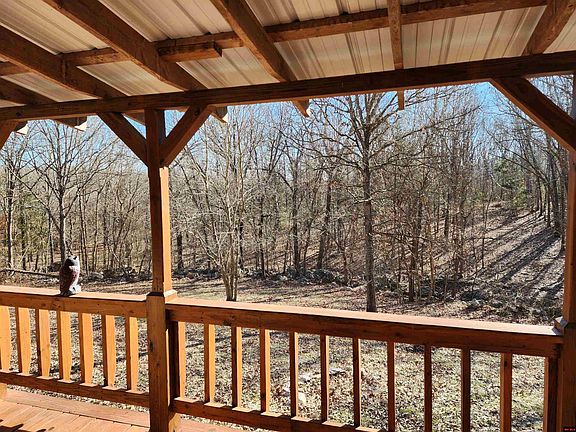 This is the true definition of cabin fever being sold furnished with the exception of a few personal items. Adorable lofted cabin sitting on 2.47 acres m/l. This property has a brand new septic system and is just a few miles from all the conveniences of Flippin. It is really private with only one home at the end of the road. An add-on has made the downstairs bedroom a more comfortable sleeping space. The loft is huge at 387 sq.ft. which can now be a wonderful game/entertaining area for the pool table or poker room. This home is delightfully decorated with that country flare, saloon style shower door, polyurethane coated bathroom with wood slab vanity top, open kitchen cabinets, wrap around covered porch, large storage shed with concrete floor and the list goes on. Must see if you are country livin' kind of people. You will not be disappointed.