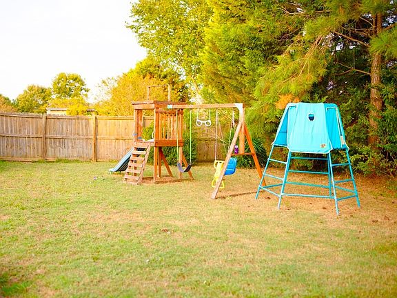 This well-maintained home in the Cotton Lakes Subdivision. It features a split floor plan and wonderful entrance leading to the family room and a formal dining room, currently utilized as an office. The spacious family room features a corner wood-burning fireplace, and cased openings provide easy access to the dining room from both the foyer and family room. The kitchen offers ample cabinet and counter space, along with a convenient pass-through window to the family room. A generously sized pantry and a laundry room with built-in cabinets for added storage space are also present. The home's split plan design places two guest bedrooms and a full bath on one side, while the spacious master suite occupies the opposite side. The master bathroom includes double vanities, a linen closet, a garden tub, and a sizable walk-in closet. The large backyard is fully fenced, providing plenty of outdoor space, with beautiful trees lining the back of the yard. Additionally, there is a substantial detached storage building that could serve as an excellent workshop or additional storage space. This home has a newer ac and new floors. Please Contact your favorite realtor for your private showing today.