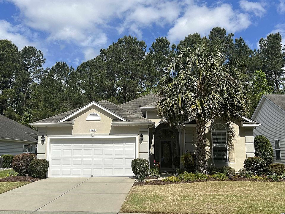 Welcome to this "Shows Like a Model" 3 Bed, 2 Bath 2 Car Garage Home in the Well Sought after 55+ Community of Myrtle Trace Grande. As you walk through the front door you will feel at home immediately. This Open Concept home is absolute beautiful featuring Professional Paining, Vaulted Ceilings, Fireplace, and so much more. The Large Master Bedroom is perfect for a King Size Bed with a Tray Ceiling and large Walk in Closet. The Master Bath has dual sinks and a Walk In Shower. A Big Kitchen offers great space for cooking for the family or guests. The lot is amazing with Views of Woods behind and in front of the home. The Backyard is fenced with a 4 foot rod iron fence good for pets to run around. Enjoy Peaceful Evenings on the Large Screened Porched relaxing with your favorite beverage or entertaining guests. Enjoy the hot summer days splashing in the Community Pool. Come see this Wonderful home today