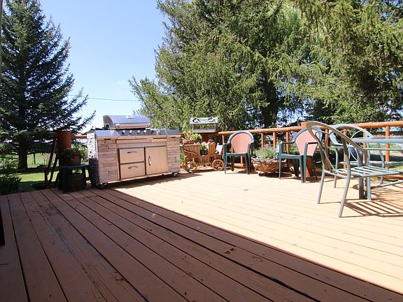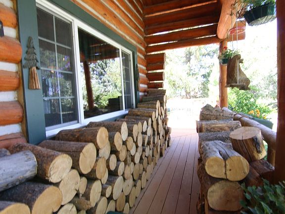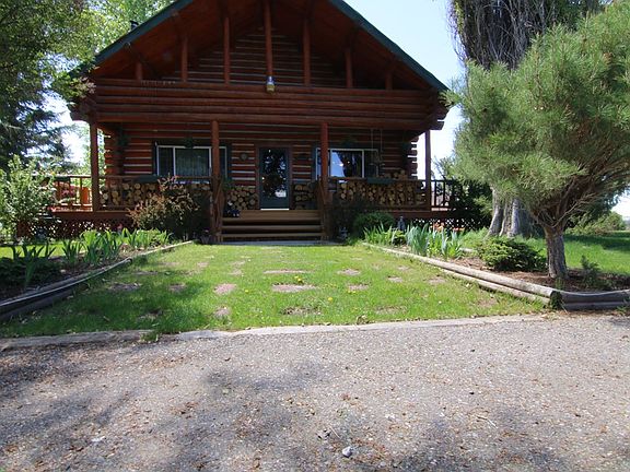 Welcome to this Secluded all Log Home with Gorgeous Sunset Views surrounded by farmland. 3 acres with water rights makes this home one not to miss. When you walk up the stairs onto the wrap around deck, you will notice all the potential room to set up some chairs for the morning sunlight. Upon entry, you will be Awestruck by the Real Hickory Hardwood floors, with a very open living concept, insert wood burning fireplace makes the living room a wonderful focal point. Kitchen has a door that opens onto the deck where summer BBQ's can take place. A sitting room just off the living room could easily be made back into a bedroom. Another bedroom adjacent to a full bathroom with Laundry hookups rounds out this Main Floor. There is a loft that is used as a master bedroom, comes with a balcony and sitting area. Downstairs there is a freestanding wood burning stove along with a 3/4 bath, Potential living area, and potential 2 more bedrooms. There is a detached Garage that is set up to have animals and Storage galore. Pasture and Garden area make this Home YOUR Home. New Metal Roof & Hickory hardwood floors we're installed 4years ago.