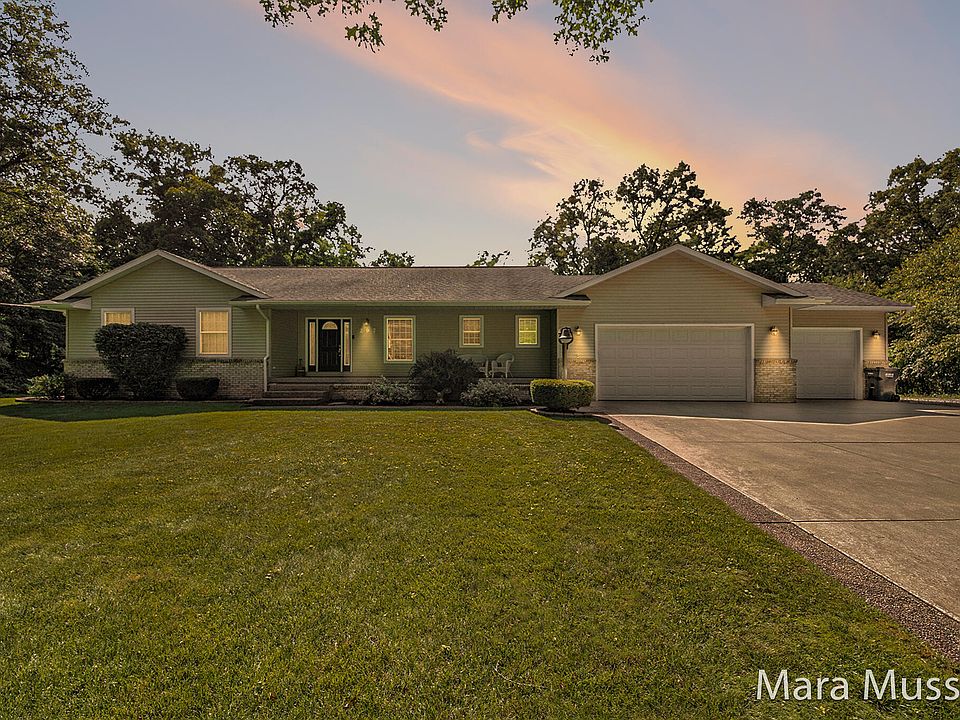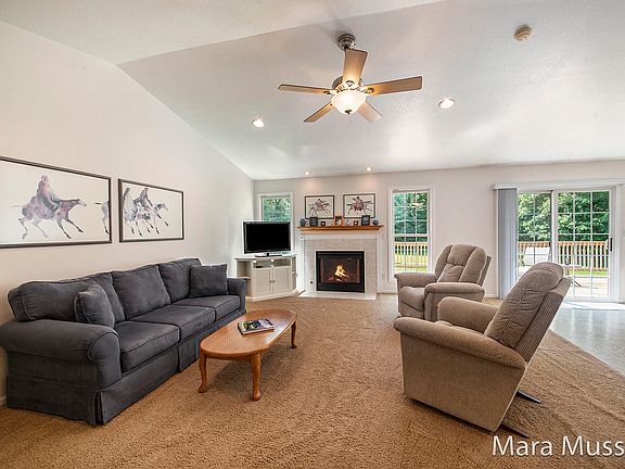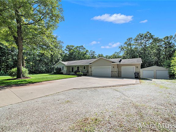 Welcome to this incredibly maintained home with over 4,000 sq ft of finished living space. Offering 4+ bedrooms including an ensuite with jetted tub in the primary bedroom, 4 bathrooms, vaulted ceilings, walk-in pantry, main floor laundry, walk out basement, 2 fireplaces, 3 car garage plus a 26x48 pole barn, fire pit area and much more. A short walk (.2mi) will find you at Wolf Lake. On over 2 acres of land, this creampuff is waiting for you. New furnace in 2022. Schedule your private showing today!