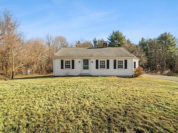 Charming spacious Ranch situated on 1.3+ acres with wooded area and direct access to Johnson Pond! Enjoy the benefits of single level living with natural lighting and plenty of storage! Large living room with built-in bookshelves, 2 bedrooms and a bonus room all with hardwood floors. Bathroom with dual sink, and separate toilet and tub/shower enclosed areas. Offers spacious kitchen, pantry and a separate breakfast nook/dining area with built-in shelves. Full unfinished basement just waiting for you to finish or use as additional storage space. Venture outside to entertain family and friends in the fenced-in backyard, enjoy a bonfire and take a short stroll through the wooded area to relax near the pond. Conveniently located near amenities, shopping, MA-24 and I-495. Waiting for you to create your own memories!