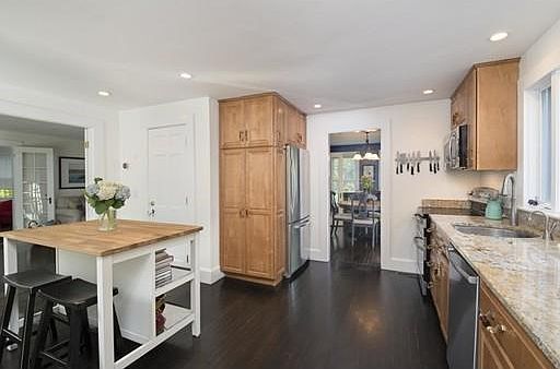 RIGHT OUT OF A POTTERY BARN MAGAZINE! LOOK NO FURTHER, THIS TASTEFULLY RENOVATED CHARMING CAPE SITS UPON A BEAUTIFUL DBL LOT ON THE HISTORIC ROAD WHERE 19TH CENTURY AMERICAN POET SAMUEL WOODWORTH GREW UP AS A CHILD..3 BDRM, 2 FULL BATH, CUSTOM DARK AMBER HDWD FLRS THROUGHOUT, GORGEOUS KITCHEN W/UPGRADED MAPLE CABINETS, GRANITE CTRS, CHIC HARDWARE and BACKSPLASH, OPEN LIVING RM W/FRENCH DOORS and A COZY N.E. FIREPLACE, SUNRM W/CUSTOM BUILT IN'S, FOR DIN RM, C/A, NEW WINDOWS and MORE!