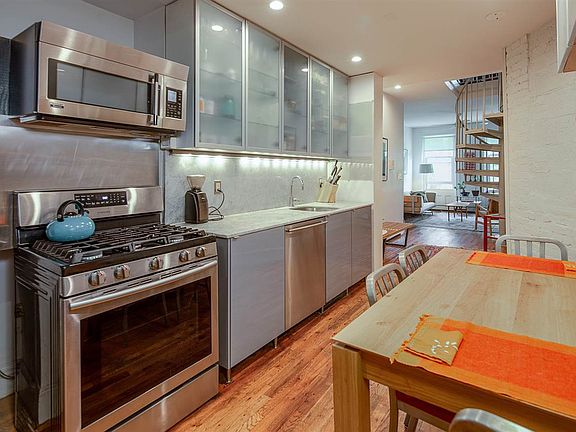 Stunning 2 BR/2 BA duplex. Custom kitchen with marble counter tops, s/s appliances, exposed brick, original hearths, full washer/dryer in unit, new Marvin Double Hung Historic windows, and hardwood floors throughout. The spiral staircase leads to the master suite and high-end bath which boasts a soaking tub, vessel sink, and classic modern fixtures. Flexible layout, upstairs master BR currently used as a home office/family room. Old world charm with modern amenities, this spacious unit is ideally situated blocks to the Path, NYC bus, restaurants, bars and nightlife abound in this trendy, sought after Hamilton Park neighborhood. 1/2 a block to Hamilton Park. Live in the heart of Downtown Jersey City.