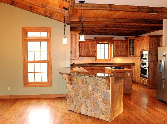 MOUNTAIN STYLE home in superior location between Blowing Rock and Boone. Very spacious with 4 bedrooms, 3 full baths and 2 half baths. Level entry home with master and laundry on the main floor. Large decks on both levels to enjoy the View and privacy. Chef's kitchen with granite tops and stainless appliances. Open floor plan with stone fireplace and oak hardwood floors. Wood burning fireplace currently has gas logs. Nice family room on lower level. Below tax value--priced to sell! Lots of square footage for the price---lowest cost per square foot in the neighborhood.