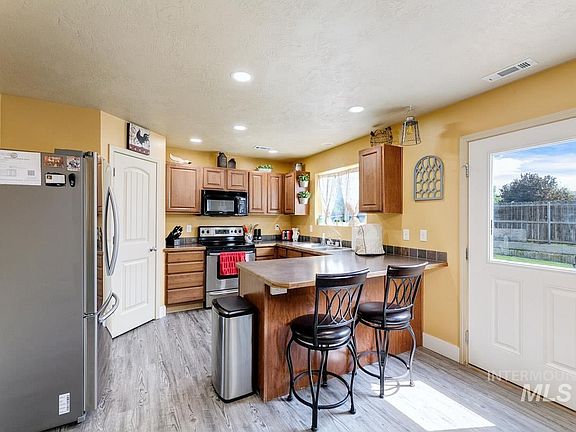 Charming and Spacious home, located in a nice Kuna Subdivision. New flooring on main level, breakfast bar, storage shed, garden space, RV parking and garage shelving. Generous outside and inside space for living, storage and entertaining. Side yard large and could accommodate trailer parking. Close to downtown Kuna for shopping. OPEN HOUSE Sat., 21st 11:00am to 2:00pm