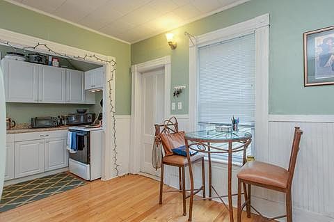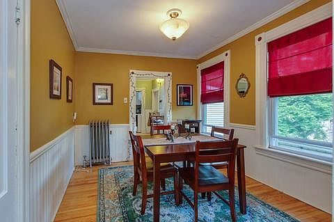 Bi-level 4 bedroom, 2 bath, laundry in unit, 1 garage spot and 1 drive way parking spot included in rent. Available October 15th or Nov 1 Has a back porch and mud room with lots of natural light. Two entrances and wrap around porch. On the second floor, there are 2 bedrooms- one fits a king bed and the other a queen. On the third floor, one could fit a king and the other a queen as well. Or be used as an office. Two pets okay. No smoking in apartment but has a back and front porch as well as a yard. Owner occupied first floor. Window unit A/C, Forced heat and electric base boards, Utilities not included. Prospect Street and Hall Street. Close / walking distance to MCPHS. Text or email for showings otherwise, open house on Saturday and Sunday noon-3pm. Owner pays water and trash