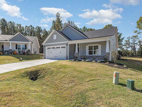This 1,741 sq ft ranch style home is situated on a serene .67 acre lot in a lovely cul-de-sac with mature trees and thoughtfully designed landscaping. The kitchen features beautiful granite countertops and stainless steel appliances with a large island providing a modern, sleek look. The primary bedroom features extensive moldings throughout with a tray ceiling and shiplap accent. The primary bathroom has a large double vanity with quartz countertops, and large shower for a luxurious feel. The living area boasts an electric fireplace for cozy evenings, while crown molding adds a touch of sophistication throughout. The home includes a convenient washer and dryer area and a 2 car garage for ample parking. This beautiful home is perfect for those seeking a quiet retreat with modern comforts. Agent is related to seller.