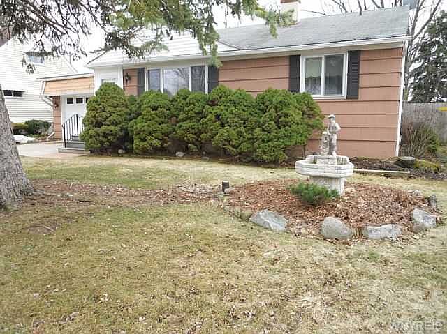 Cozy ranch with a 2 story family room that overlooks the lovely landscaped backyard. Family room boasts a beautiful wood burning fireplace on a stone wall. Dine in the eat-in kitchen or a formal dining room for entertaining guests. Hardwood floors, natural woodwork and built-in shelving & storage. Rec room in the basement with a gas heater and plenty of storage. Updated mechanics, vinyl windows and whole house generator. Neighborhood street that is convenient to shopping. Lancaster school district- STAR exemption would be a reduction of $476.
