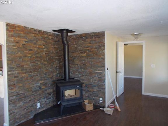 This is a beautifully updated, remodeled home. All new kitchen appliances and cabinets, new washer & dryer, new wood stove. New dark flooring throughout, large decks and windows, very light and comfortable. 1+ acre lot with some mature trees, all leveled with a pond, really nice basics that you can finish to your liking.