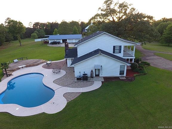 STATELY Home on 5 ACRES!!! Great for growing family. 3 miles to town, 5 miles to Lake Claiborne. Large Oaks, circular drive, gunite pool. No rear neighbors, pool shed for equipment, walking trails & creek nearby. 5 car garage/shop w/2yr old tin roof, shed attached for trailer/tractor storage. Soaring ceiling in foyer, eat in kitchen w/sep dining, stainless appliances, very large living & oak staircase. Two front bdrms have balcony access. Jack & Jill upstairs. Huge walk in closets. Enormous laundry!