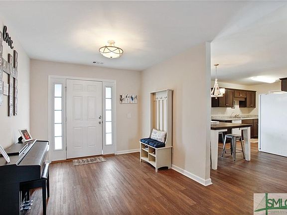 Call Carin at 912-656-1018 for your personal showing! No NOA! Only 3 years old! This ranch style home has a split floorplan with 3 bedrooms, 2 bathrooms and an attached 2 car garage. There is wood flooring in the living room, kitchen, dining area and hallways. Enjoy the wood burning fireplace in the living room in the winter. Owner's suite has a large walkin closet with double sinks and shower/tub combo. Just through the kitchen is a large laundry room with extra storage. Enjoy your private, fully fenced in backyard. No flood insurance required!