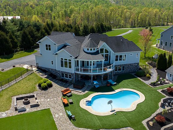 Wow what a view from this 5,000 + sqft property situated on 3 acres overlooking the river and Harrisburg! Custom built home featuring an inground swimming pool with a pool house, outdoor stage area, putting green, and more! Feel like you are on vacation all year round! This beautiful home offers a bright and open layout with modern, luxurious - custom fixtures throughout. The gourmet kitchen offers high-end appliances and countertops. A breakfast area offers panoramic views. The kitchen opens to a family room with exposed wooden beams. First floor master suite includes a luxurious en-suite with a jacuzzi tub in the center, dual vanities, and a tiled walk-in shower with multiple rainfall shower heads. Enjoy the wonderful views in every room on the main level. The lower level offers a unique one-of-a-kind entertainment experience. Featuring an open area for entertaining/gathering, a center stage, custom wall art by local artist, full bar. A guest bedroom with private bath is also located on this level. The upper level offers a rec room, two additional bedrooms, and full bath. Energy efficient home with solar panels and a back up generator. This home offers a total of 4 bedrooms, 3 full baths, and 2 half baths. This is truly a once and a lifetime opportunity to own this custom home designed for indoor and outdoor entertaining with one-of- a kind views.