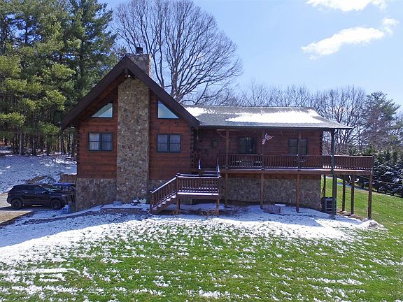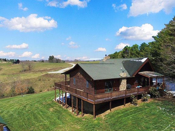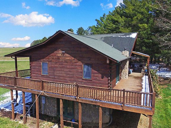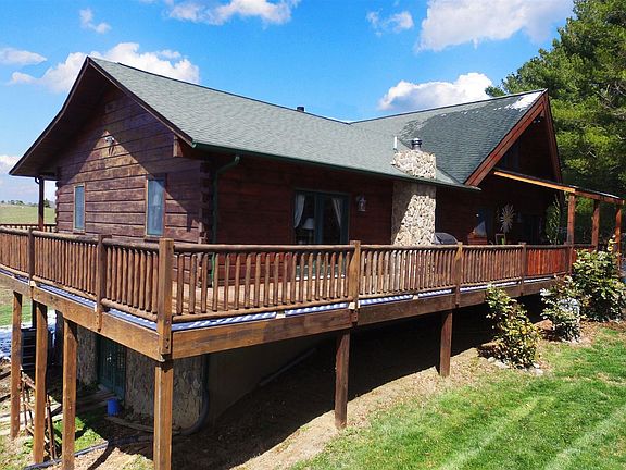 Immaculate well kept log home located just inside Floyd County VA but within minutes to Riner and Christiansburg VA. This home has just over 2,000 sq ft of living space, spacious rooms and a loft which makes for an amazing office or study. Beautiful white oak wide plank hardwoods are throughout the home and tile floors in the kitchen. A spectacular wood burning rock fireplace makes the living room a standout. On chilly evenings enjoy the indoor wood furnace which is routed to rooms by duct work. A heat pump also supplies heat and cool air in the summer months. A double car attached garage offers plenty of space for vehicles or other items you need to store. This property is located in a quiet neighborhood setting within the cul-de-sac. Enjoy the mountain views looking over eastern Floyd County as you relax on the front and rear porches.